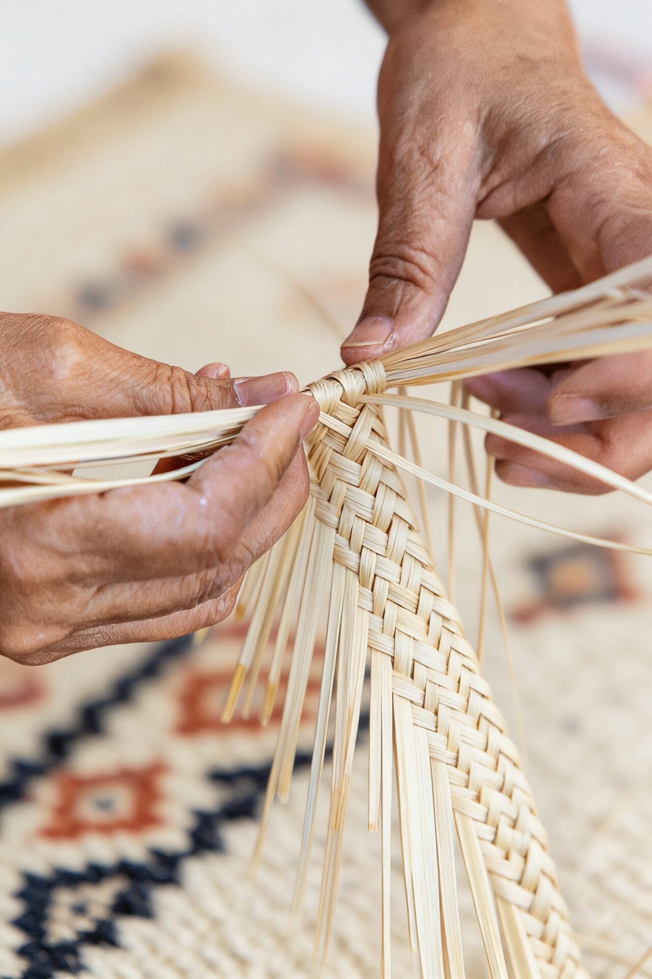 Chaque création Hamsa — des sacs en fibres végétales aux accessoires tressés à la main — est le fruit du travail minutieux de nos 25 artisanes locales. Utilisant des matériaux naturels et des techniques transmises de génération en génération, chaque pièce est conçue avec soin, reflétant notre profond respect pour la matière et notre engagement à préserver l’artisanat tunisien.